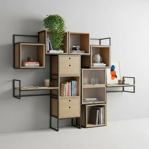 Las prateleiras modulares permiten personalizar el diseño según el espacio. Se pueden reorganizar fácilmente para adaptarse a diferentes necesidades. Son ideales para salas dinámicas.