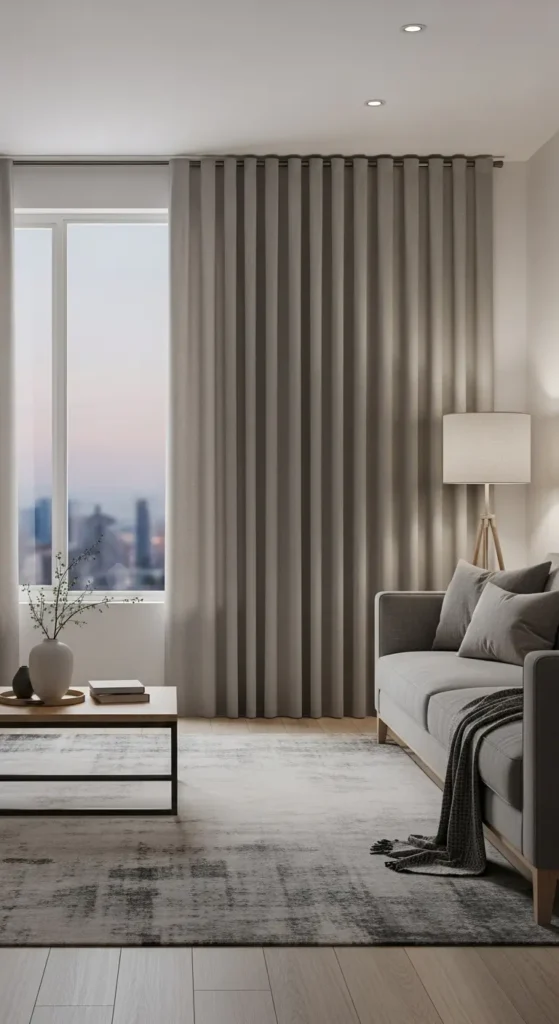 Los tonos neutros como beige, gris o blanco son ideales para una sala moderna. Estas cortinas se integran fácilmente con cualquier decoración, aportando elegancia y equilibrio visual. Además, ayudan a crear un ambiente relajante.