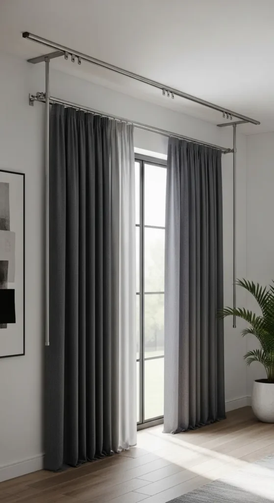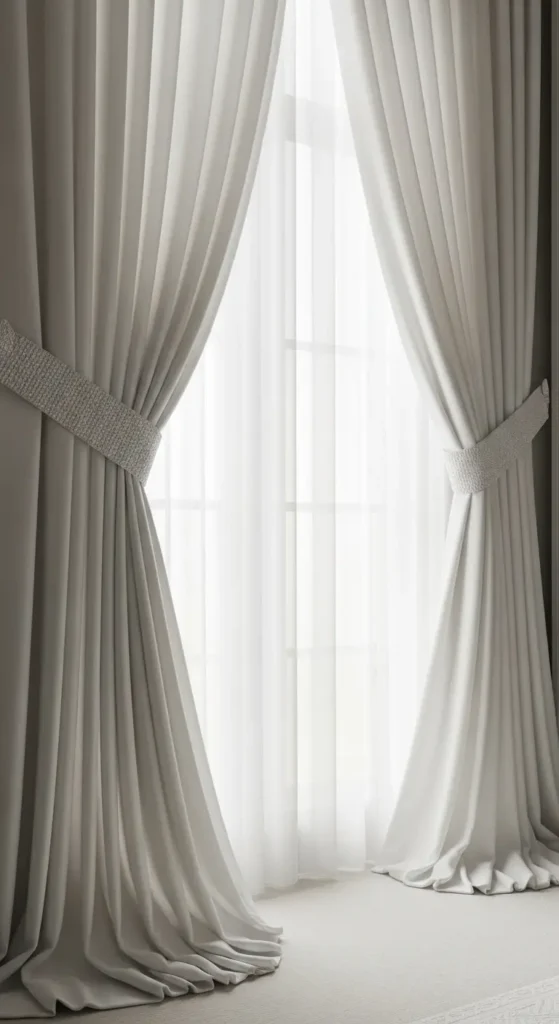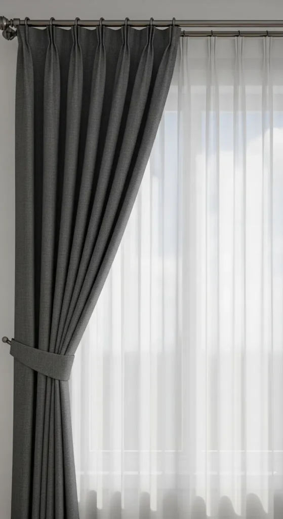 Las cortinas de doble capa combinan funcionalidad y estilo. Permiten controlar la luz durante el día y bloquearla completamente en la noche. Además, añaden profundidad visual.
