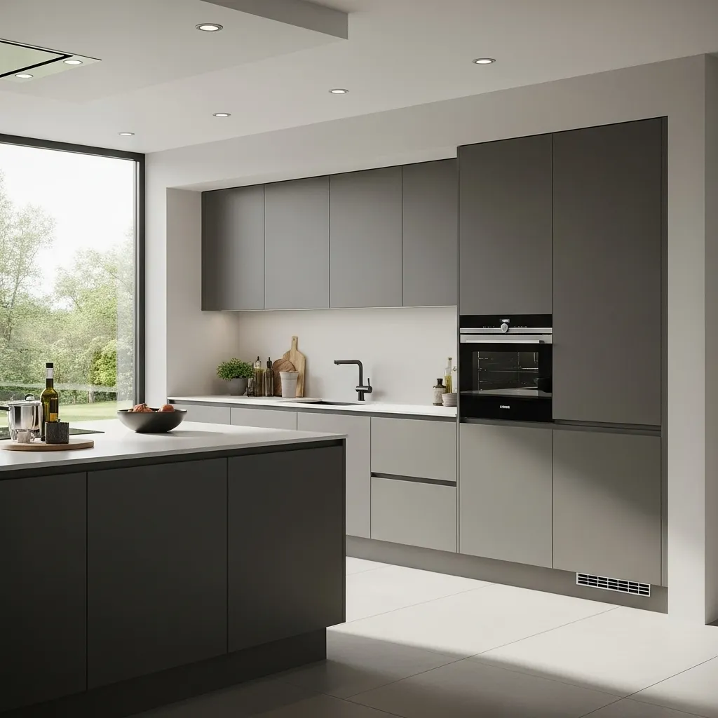 Puxadores grandes roubam espaço visual e físico. Sistemas embutidos deixam tudo mais limpo e moderno.