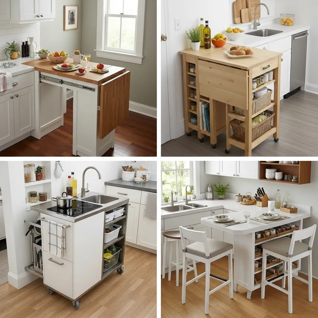 Aqui começa a parte divertida. Sim, existem ilhas feitas para espaços minúsculos. E não, elas não parecem móveis de brinquedo.