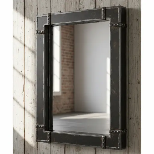 El estilo industrial utiliza marcos de metal para crear un diseño moderno. Este tipo de espejo aporta carácter y personalidad. Es ideal para salas contemporáneas.