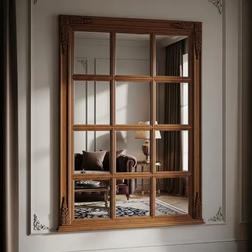 Este tipo de espejo imita la estructura de una ventana, creando la ilusión de mayor espacio. Es perfecto para salas pequeñas o con poca luz. Aporta un estilo clásico moderno.