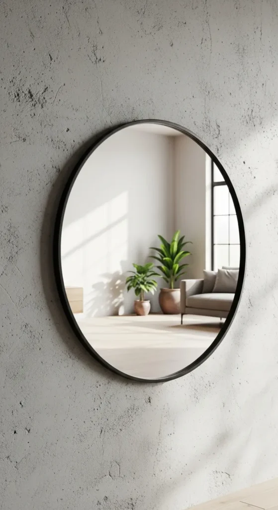 El espejo redondo es una de las opciones más populares en decoración moderna. Su forma suave rompe con las líneas rectas del mobiliario, creando equilibrio visual. Además, es ideal para espacios pequeños por su diseño ligero.