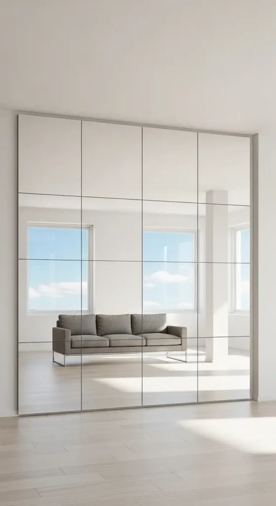 Cubrir una pared con espejo es una técnica ideal para ampliar el espacio. Refleja la luz y crea una sensación de amplitud. Además, aporta un diseño moderno.