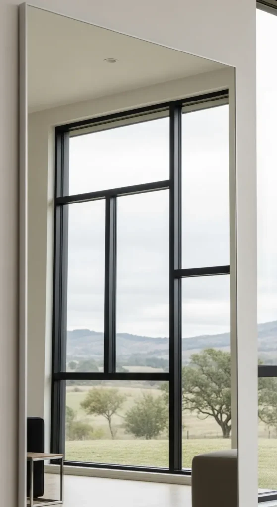 Los espejos tipo ventana crean la ilusión de mayor espacio y luz. Son ideales para salas pequeñas o con poca iluminación natural. Además, aportan un estilo elegante y moderno.