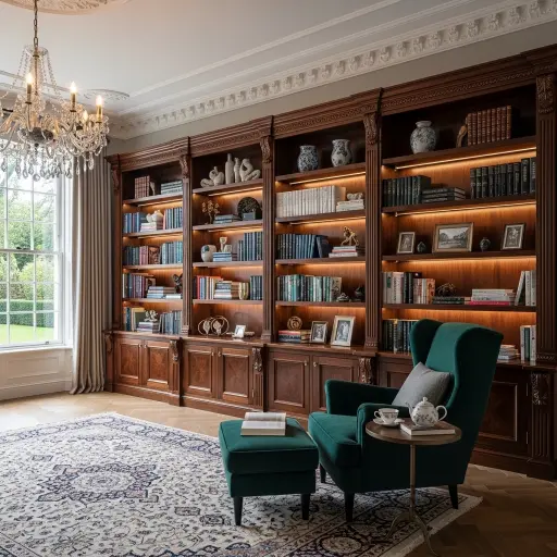Los estantes empotrados aprovechan al máximo el espacio disponible y ofrecen un diseño limpio. Se integran perfectamente en la arquitectura de la sala. Además, aportan elegancia y orden visual.