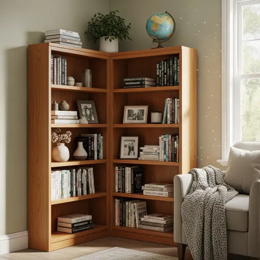 Los estantes de esquina son ideales para aprovechar espacios desaprovechados. Son perfectos para salas pequeñas o compactas. Además, ayudan a mantener el orden sin ocupar demasiado espacio.
