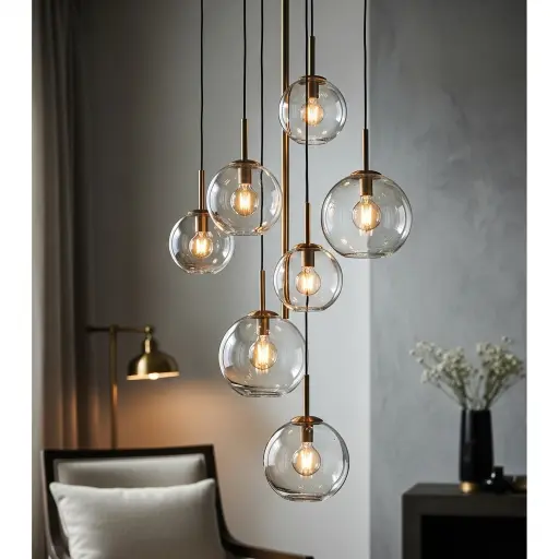 Los lustres con múltiples puntos de luz crean un efecto visual dinámico. Permiten jugar con alturas y diseños. Son perfectos para espacios modernos.