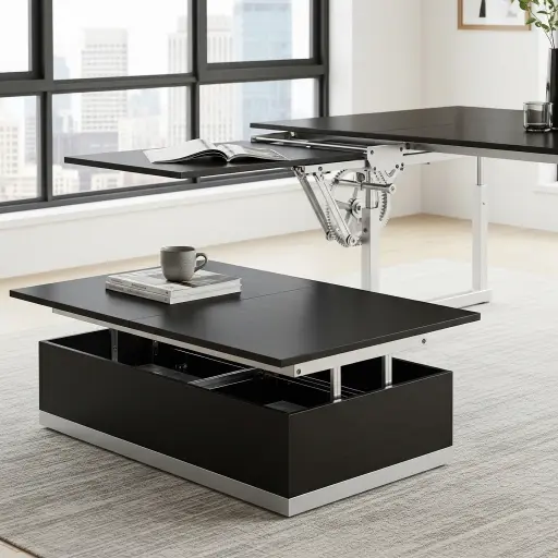Las mesitas multifuncionales ofrecen múltiples usos en un solo mueble. Pueden ajustarse en altura o convertirse en escritorio. Son ideales para espacios pequeños.