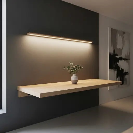 Las mesitas flotantes son perfectas para ahorrar espacio. Se fijan a la pared y crean una estética moderna y ligera. Son ideales para salas compactas.