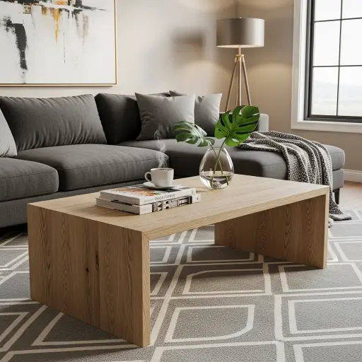 La madera aporta calidez y un toque natural a la sala. Las mesitas de madera son duraderas y atemporales. Funcionan muy bien en estilos modernos y rústicos.