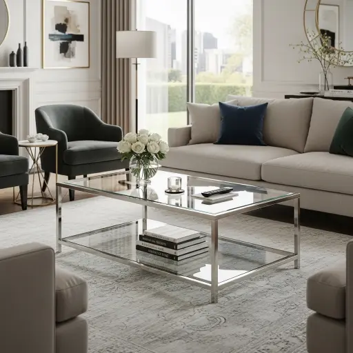 Las mesitas con acabado brillante aportan un toque contemporáneo. Reflejan la luz y hacen que el espacio se vea más luminoso. Son perfectas para estilos modernos.