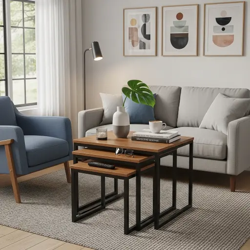 Las mesitas nido son prácticas y versátiles. Se pueden guardar una debajo de otra para ahorrar espacio. Son ideales para salas pequeñas.