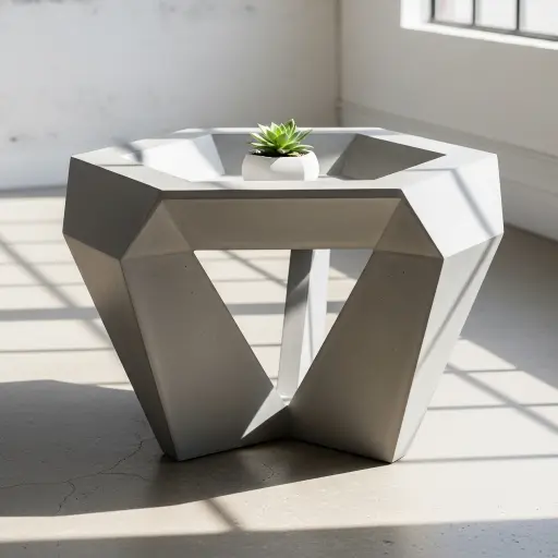 Las mesitas con diseños geométricos aportan originalidad y estilo. Funcionan como pieza decorativa y funcional al mismo tiempo. Son perfectas para salas modernas creativas.