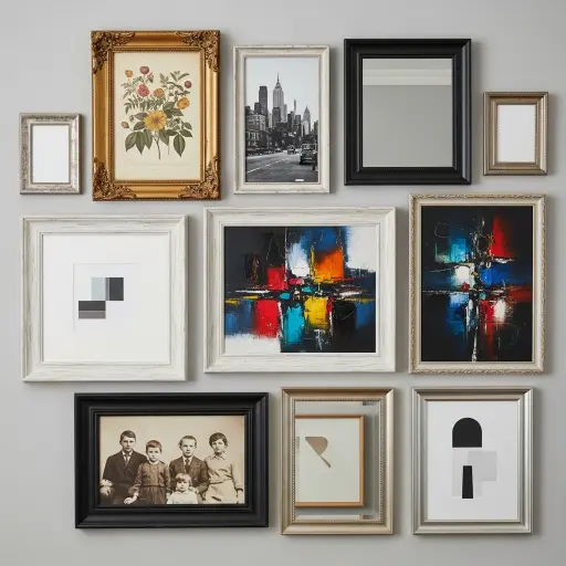 Combinar distintos tipos de marcos añade dinamismo a la decoración. Este estilo es ideal para salas modernas y creativas. Permite jugar con texturas y materiales.