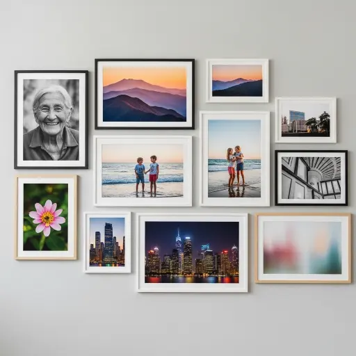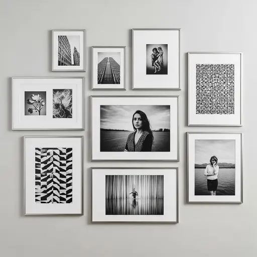 El estilo galería es uno de los más populares en decoración moderna. Consiste en agrupar varias fotos en diferentes tamaños y marcos, creando una composición artística. Este diseño permite expresar personalidad y creatividad.