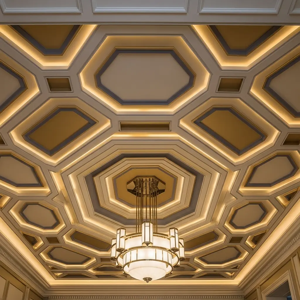 Los plafones con formas geométricas aportan un toque contemporáneo. Este diseño se convierte en un elemento decorativo por sí mismo. Además, crea un impacto visual atractivo.