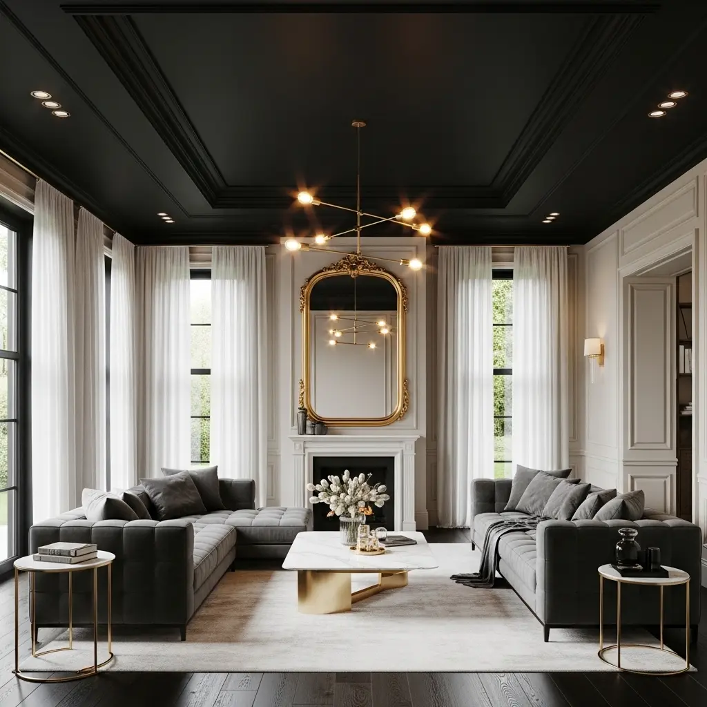 El color negro aporta modernidad y sofisticación. Este tipo de plafón crea contraste en salas claras. Además, se convierte en un elemento decorativo destacado.