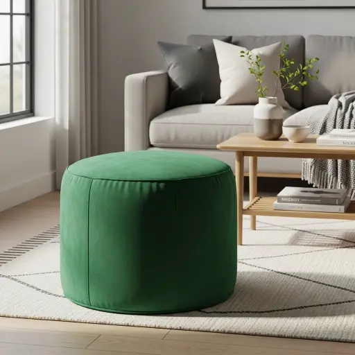 El terciopelo es un material que aporta lujo y sofisticación. Un puf de terciopelo puede convertirse en un elemento destacado dentro de la sala. Además, su textura suave aumenta la sensación de confort.