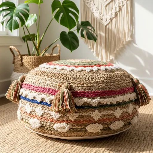 6. Puf tejido o de fibras naturales