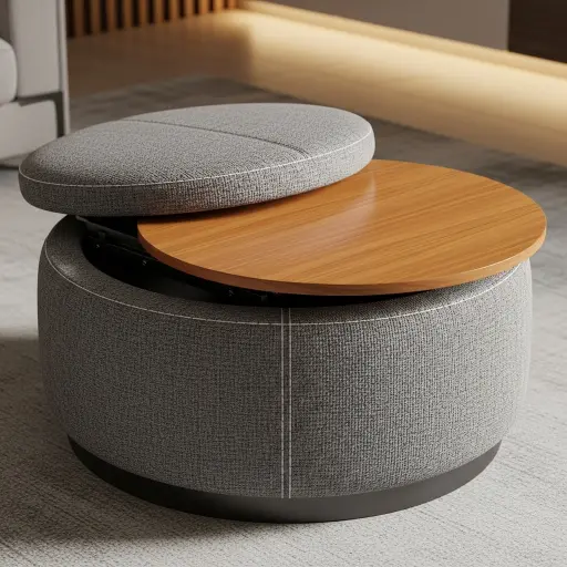 Los pufes multifuncionales ofrecen múltiples usos en un solo elemento. Pueden servir como asiento, reposapiés o mesa. Son ideales para espacios pequeños y modernos.