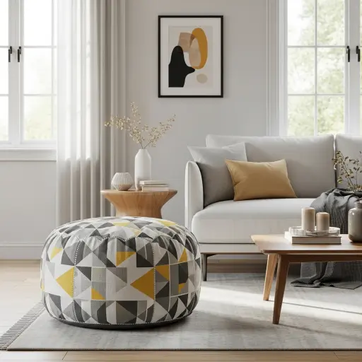 Los pufes con diseños geométricos aportan originalidad y estilo. Funcionan como elemento decorativo llamativo. Son ideales para salas modernas creativas.