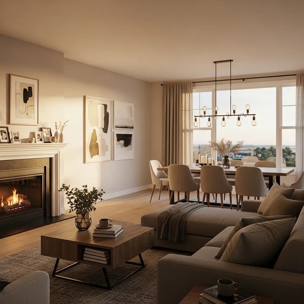 Utilizar diferentes tipos de iluminación ayuda a definir cada ambiente. Por ejemplo, una luz cálida en la sala y una lámpara colgante en el comedor crean separación visual y funcional.