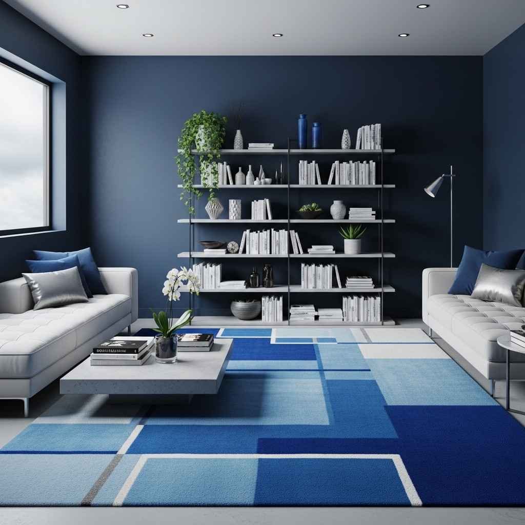 Las alfombras modernas complementan perfectamente una sala azul. Añaden textura y ayudan a definir el espacio. Además, aportan comodidad y estilo.