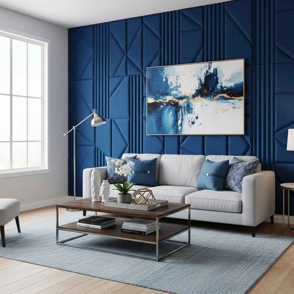 2. Sala moderna azul y blanco
