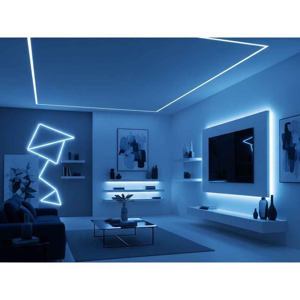 La iluminación LED resalta los tonos azules y crea ambientes únicos. Permite jugar con diferentes intensidades y colores. Es una excelente opción para un estilo moderno y tecnológico.