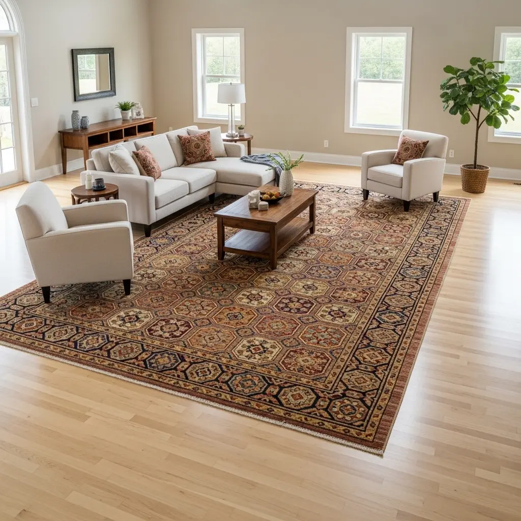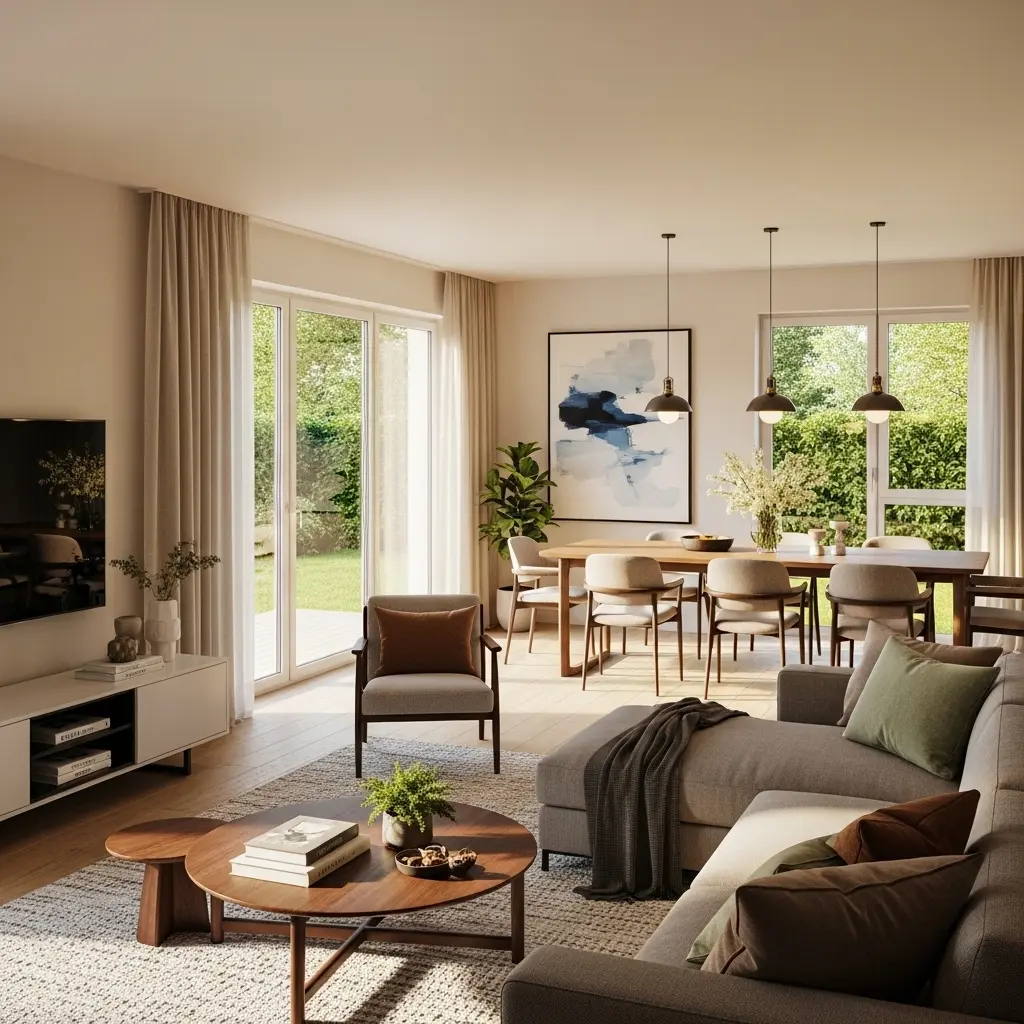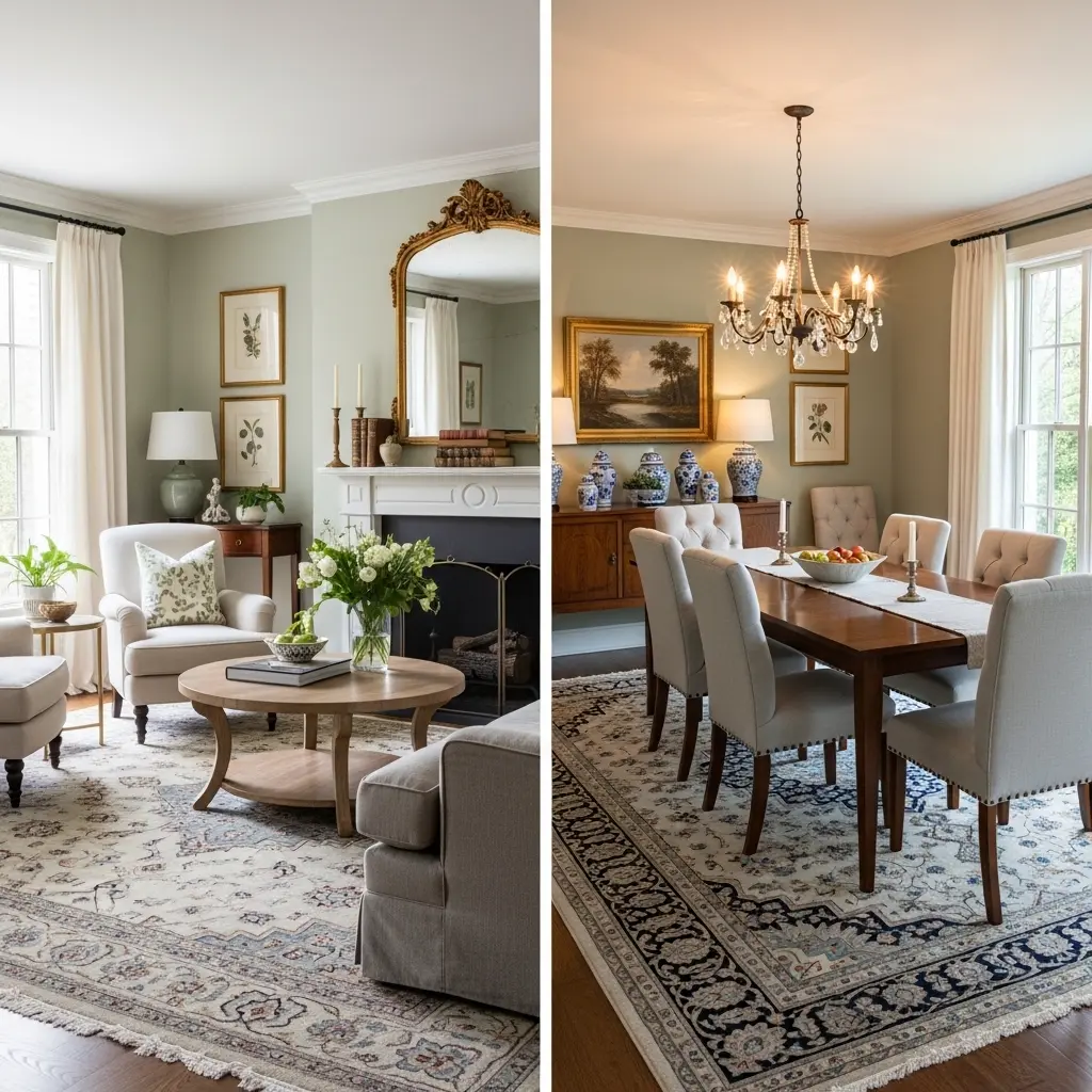 Las alfombras son una excelente forma de dividir visualmente los espacios sin necesidad de muros. En la sala, ayudan a delimitar el área de descanso, mientras que el comedor se mantiene definido. Además, aportan textura y estilo.