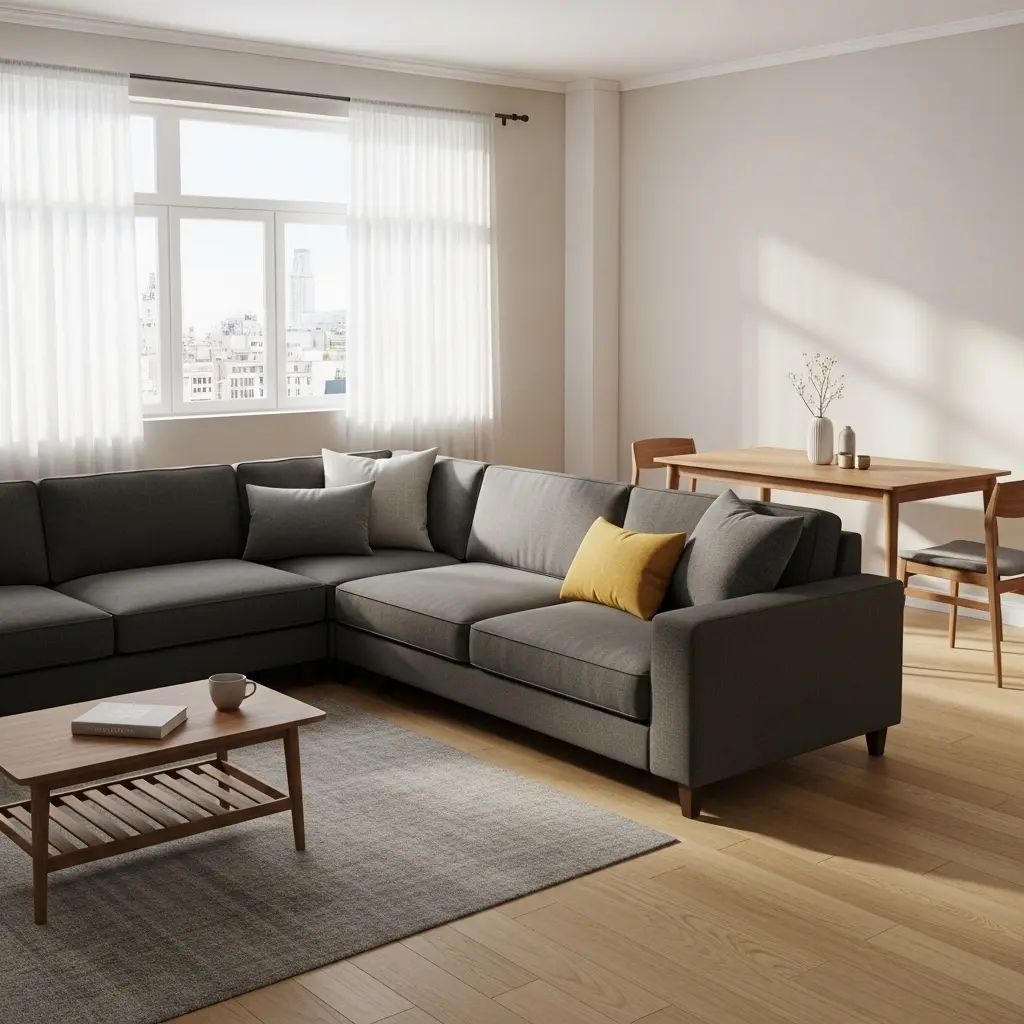 Un sofá en L puede ayudar a definir el área de la sala dentro de un espacio integrado. Este diseño es funcional y moderno. Además, optimiza el uso del espacio.