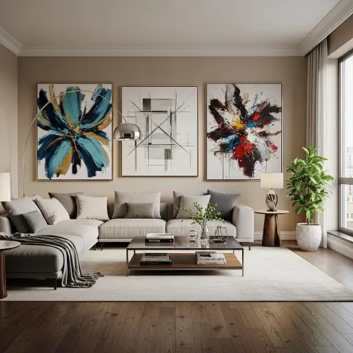 El arte contemporáneo añade personalidad y estilo a la sala. Las piezas grandes funcionan como punto focal y elevan el diseño. Además, aportan un toque único.
